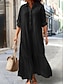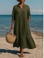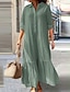 Női Midi ruha A vonalú ruha Szabadság Alkalmi Boho Napi Szabadság Laza öltözet Sima Hosszú ujj Hajtóka Medence Mély zöld Fekete Világoszöld Nyár Ősz