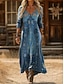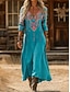 Női Maxi Ruha Kaftan 3/4 Hosszú Ujjú Környakú Lazac Átmeneti Ruha A vonalú Ruha Boho Mindennapi Ünnepi Randi Grafika Geometrikus Piros Világos Barna Kék Bézs Tavasz