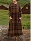 Női Midi ruha Hüvelyruha Rakott ruha Szabadság Alkalmi Boho Szabadság Tavaszi ruha Normál Kockás Hosszú ujj Terített nyak Medence Világosbarna Barna Tavasz Ősz