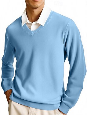 férfi prémium gyapjúból készült kasmír v-nyakú pulóver, klasszikus kötött pulóver, puha, meleg, lélegző