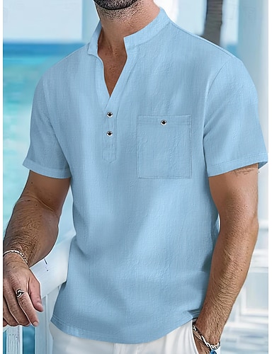 Férfi Vászon ing Popover ing Alkalmi ing Gombos póló Sima Vakáció Utca Fehér Sárga Rózsaszín Sárgabarack Rövid ujjú Álló gallér Tavaszi nyár Ruházat Zseb