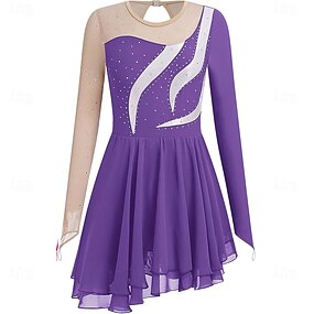 Kűrruha Női Lány Klizanje na ledu Ruhák Ibolya Hüvelykujj bújtató Aszimmetrikus szegély Háló Nagy rugalmasságú Edzés Verseny Kűrruhák Klasszikus Kristály / Strassz Hosszú ujj Jégkorcsolyázás