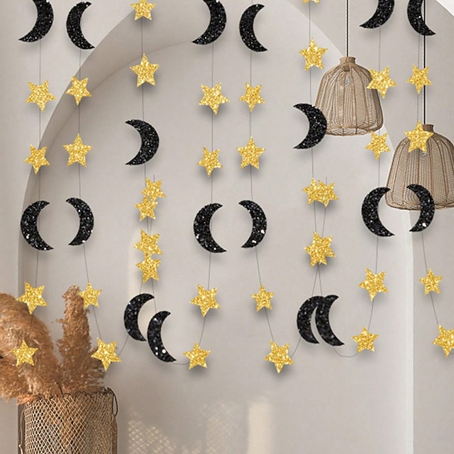 3 méteres ramadan eid csillogó hold és csillag girland, csillogó függő banner iszlám fesztiválra, ramadan mubarak faldekoráció, közel-keleti ünnepi partidekorációk#10471225