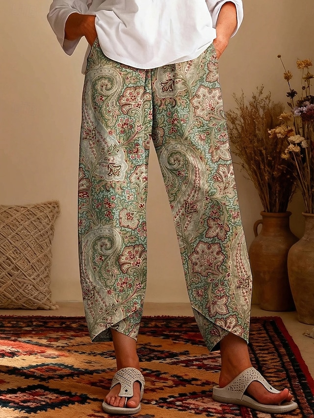 Női Nadrág Szabadság Szüret Etnikai stílus Bokáig érő Magas derék Grafika Paisley Elasztikus derékpánt kellemes Lélegzési képesség Mekano Nem elasztikus Napi Szabadtéri Utca Medence Khakizöld Nyár #11219632