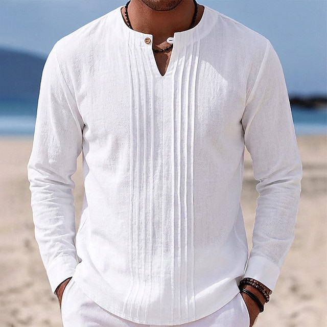 Férfi Ing Vászon ing Nyári póló Stranding Tömör szín Hétköznapi Vakáció Medence Fekete Fehér Khakizöld Hosszú ujj Mandarin gallér Nyár Tavasz Ruházat Fodrozott #11952920