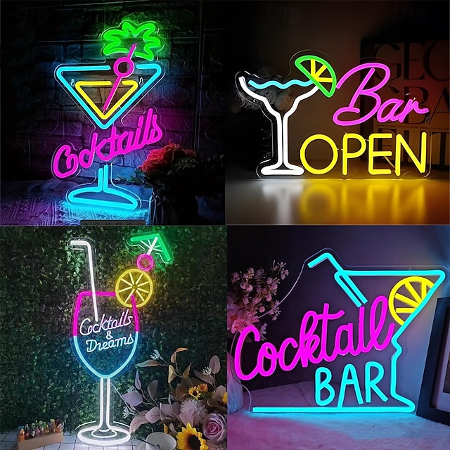 koktélok neonreklám faldekorációhoz bárhoz LED tábla szabályozható usb-s beltéri hálószobába nappaliba étterembe otthoni bár parti pub éjszakai klub férfi barlang bisztró fali dekorációs lámpák #12528079