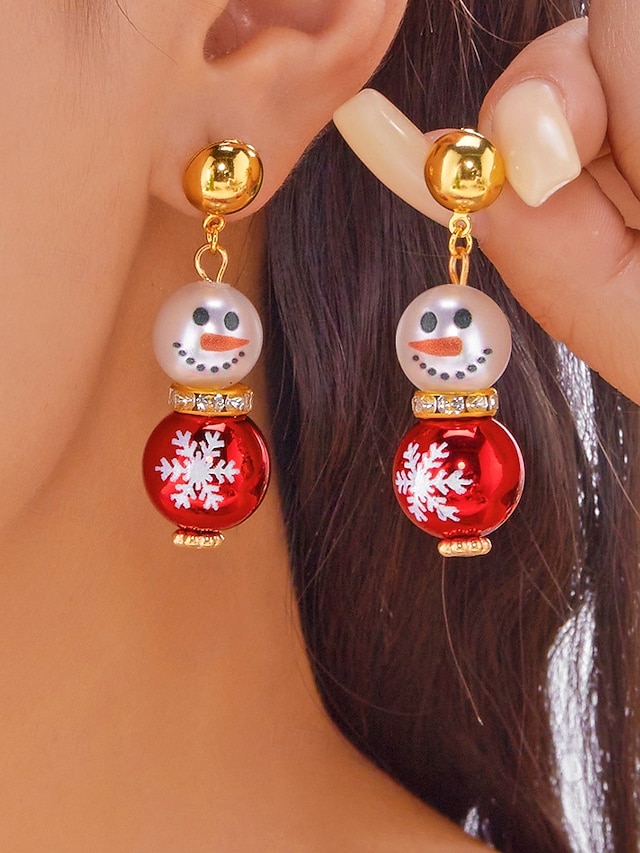 női karácsonyi hóember fülbevalók – ötvözet piros, zöld és fehér gyöngyökkel, tökéletesek ünnepi bulikra és ünnepi alkalmakra#12633898