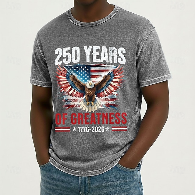Férfi Amerikai amerikai zászló Sas Póló Ásványi mosópóló Rövid ujjú póló Savas mosás Terített nyak Ing Vintage Retro Hazafias Hétköznapi Utazás Vakáció Medence Bíbor Szürke Nyár Tavasz Ruházat M L XL #12676716