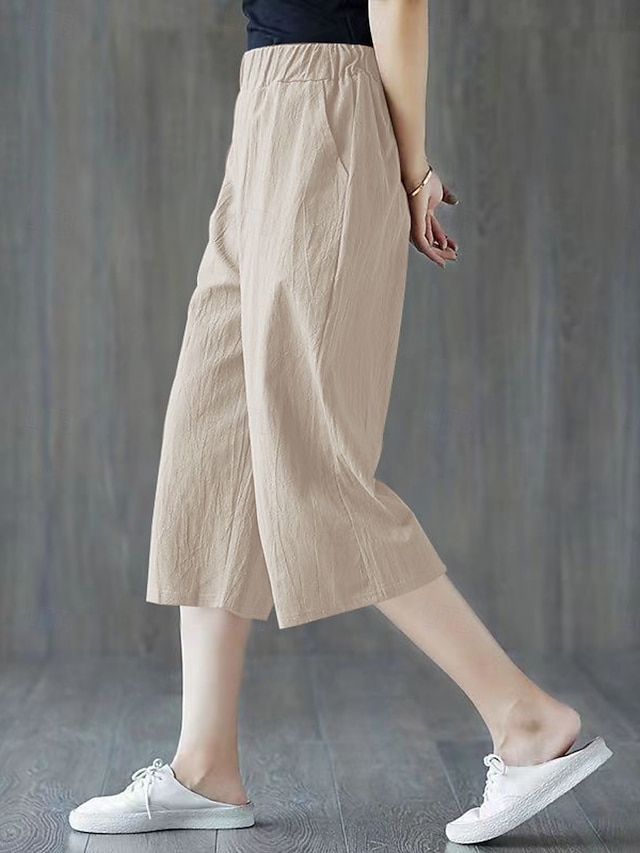 Női Capri nadrágok Műpamut ágynemű Nadrág Nyári nadrág Szabadság Alap Alkalmi Borjú-hossz Magas derék Sima Zseb Elasztikus derékpánt Mokaszinok Mekano Légáteresztő Nyúlós Tengerpart Szabadság Fekete #12740274
