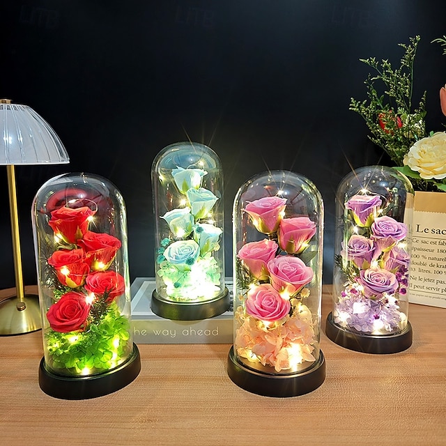Üveg Rózsa Örökre Örök Kristály Virág Felkeltett Rózsák Üveg Dóm alatt Ajándékok Nőknek Anyának Nagymamának Feleségnek Nővérének #12915120