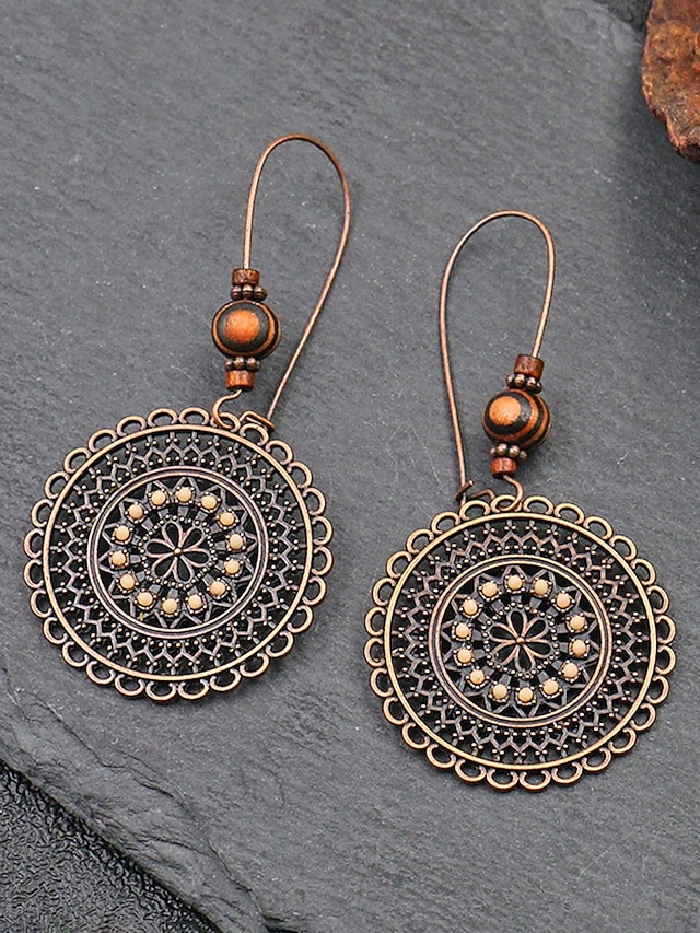Női ötvözetből és fából készült kerek fülbevalók, vintage bohém mandala dizájn, könnyed, mutatós stílus, tökéletesek hétköznapi viseletre, tengerparti nyaraláshoz és nyári szettekhez#13136721