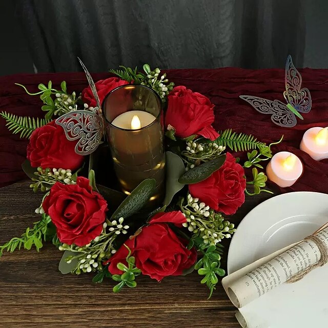 műrózsa gyertyagyűrű koszorú, virágos gyertyatartó dekoráció esküvőre, asztaldíszre, fesztiválra vagy európai stílusú lakberendezésre#13156230