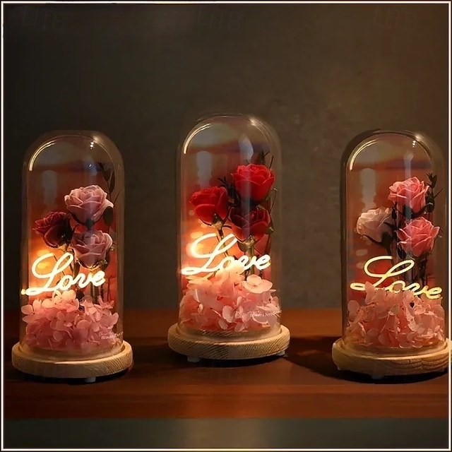 Üveg Rózsa Örökre Örök Kristály Virág Felkeltett Rózsák Üveg Dóm alatt Ajándékok Nőknek Anyának Nagymamának Feleségnek Nővérének #13602221