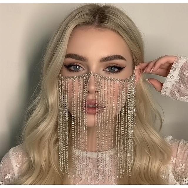 Samba Kiegészítők Pompás Ezüst Hangzású Teljes Arc Lánc Maszk - Csillogó Bojt Fátyol Mardi Gras Rave Partin Teljesítmény Jelmez#13980525