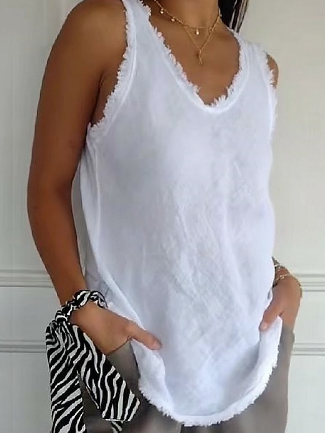 Női Blúz Csipke Tömör szín Sima Elegáns Stílusos Klasszikus Ujjatlan Háromnegyedes V-alakú Hosszú felsők Napi Medence Fehér Arcpír rózsaszín Nyár Tavasz #14686882