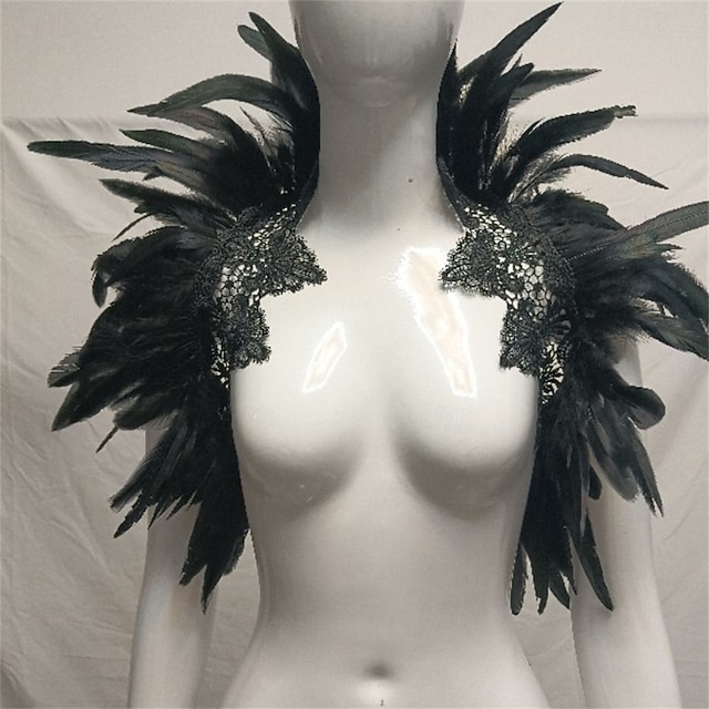 Carnaval 2026 Rio Carnaval Szamba Kiegészítők női fekete tollas vállkendő csipke applikációval Brazíliai Fesztivál Előadói Jelmez#14945347