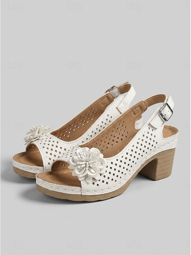 női virágos kivágású slingback szandál – kényelmes, vaskos sarkú nyári szandál hétköznapi és kerti parti viselethez #15812974