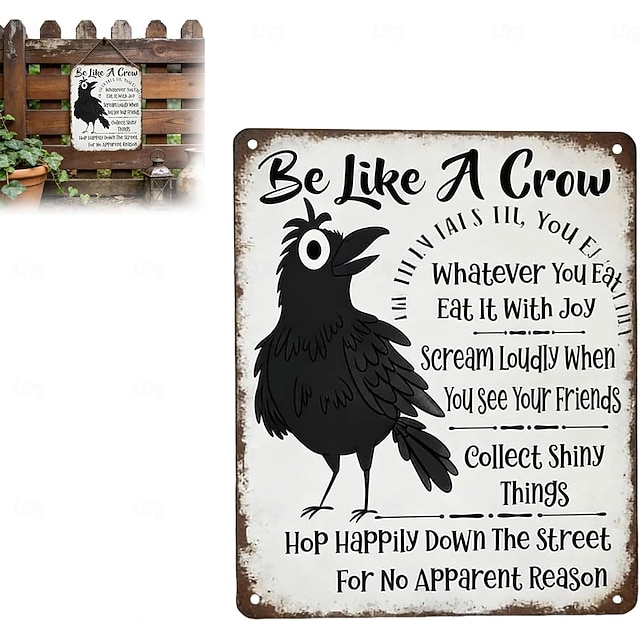 légy olyan, mint egy varjú vintage fém tábla, vicces pozitív falikép, varjú művészeti fali plakett humoros idézettel, rusztikus parasztház dekoráció otthoni irodába, konyhába és bárba, inspiráló#16982594