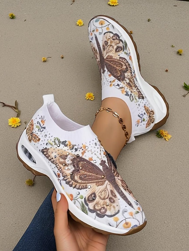 női élénk színű, pillangómintás, bebújós tornacipő légpárnával - lélegző kötött sétacipő könnyű testmozgáshoz és hétköznapi kirándulásokhoz #17362280