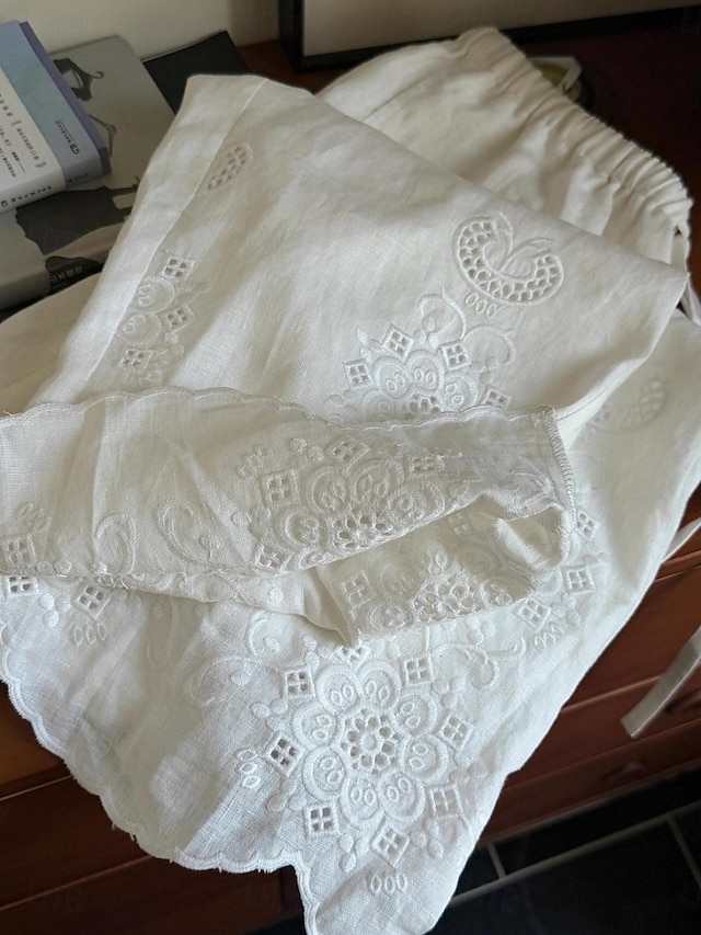 Női Pamut vászon nadrág Nadrág Nyári nadrág Strand nadrág Szabadság Alap Alkalmi Teljes hossz Magas derék Sima Hímzett Zseb Elasztikus derékpánt Mokaszinok Mekano Légáteresztő Nyúlós Szabadtéri #17769939