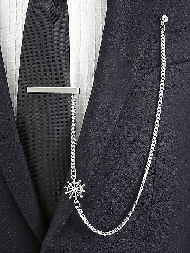 férfi ezüst nyakkendős lánc tengeri hajókerék-kialakítással – elegáns és stílusos kötőrúd-kiegészítő esküvőkre, üzleti és hivatalos eseményekre#17791641