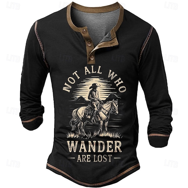 Férfi Hosszú Ujjú Henley Póló 'Nem Mindenki Aki Bolyong Az Elveszett' Grafikus - Kaland Felfedezés Életstílus Póló #17993359