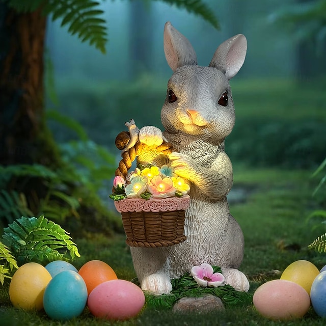 húsvéti nyuszi virágkosár gyantás figura lámpával, kültéri napelemes vízálló kerti dekoráció, udvari ösvény gyepvilágítás, aranyos állatszobor, mezőgazdasági tájképi díszvilágítás kültéri dekorációhoz#18258813