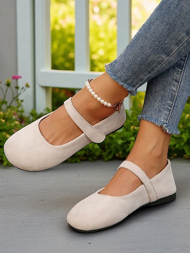 női bézs színű, széles orrú Mary Jane lapos talpú cipő – puha, művelúr kényelmes cipő hétköznapi kirándulásokhoz, kerti sétákhoz és mindennapi viseletre #18393009