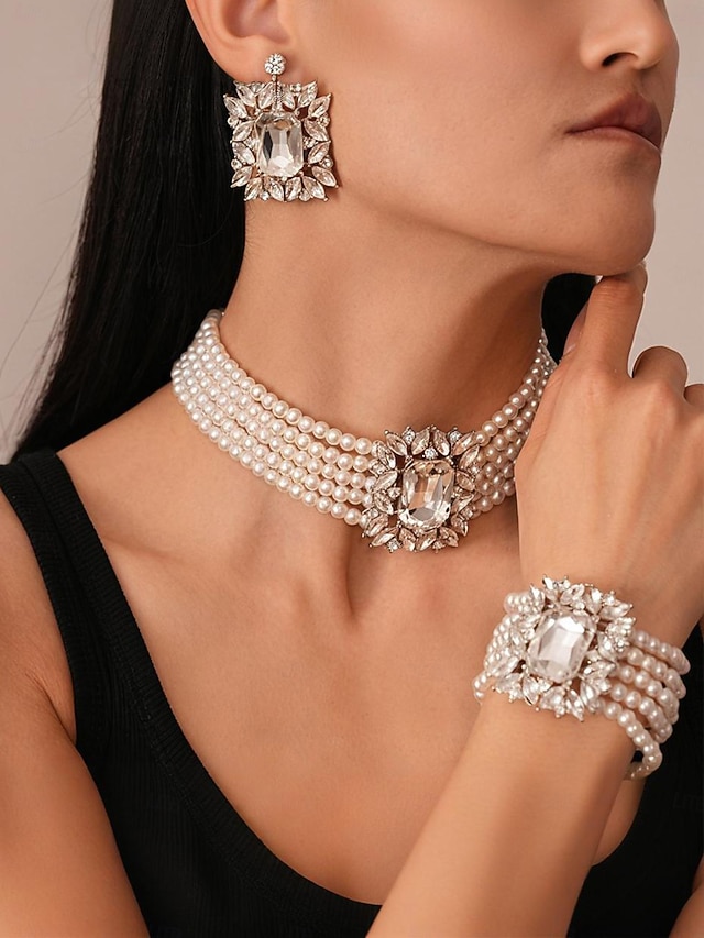 női gyöngyös strasszos ékszer - vintage ihletésű nyaklánc, karkötő és fülbevaló Gatsby partikra és esti eseményekre#18705665