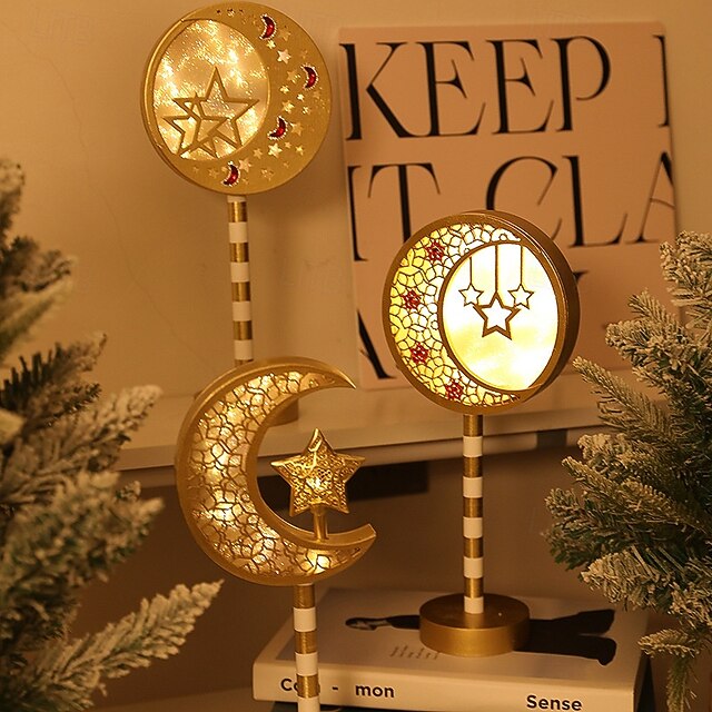 ramadan eid led dekoratív fényjelzés csillag hold vár beltéri hálószoba ünnepi hangulatú függőlámpa aa elemdoboz 30cm magasság#19166176
