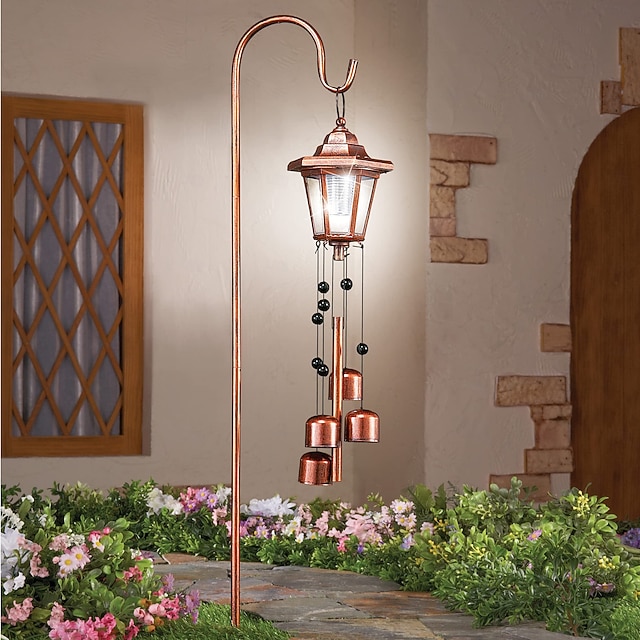 1 db kültéri napelemes szélcsengő függőlámpa pásztorkampóval, udvari kert, park, füves ösvény, tájfény, hangulat dekorációs lámpa#19385800