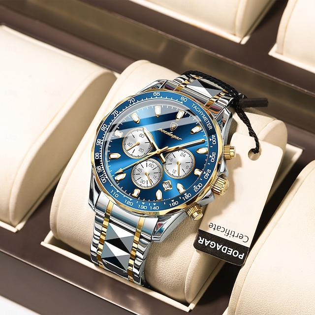 Férfi Kvarc Óra Luxus Nagy Dial Üzleti Lumineszcens Naptár Dátum Hét Vízálló Rozsdamentes Acél Óra #19558320