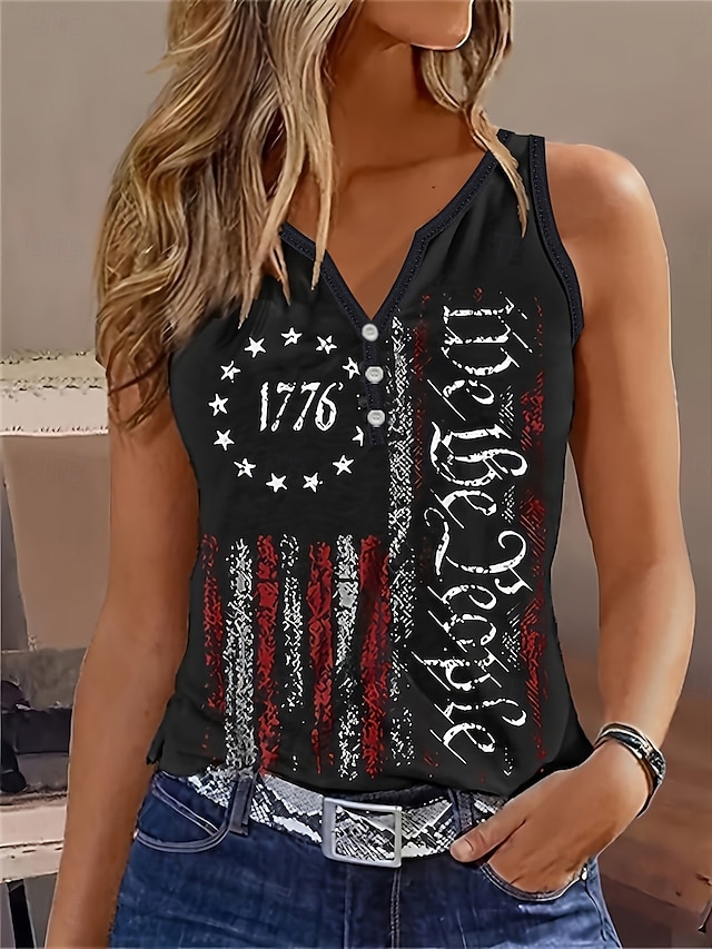 Függetlenségi Nap Amerikai Évforduló Hazafias Női Kamiszolás Tank Felső Zászló Napi Stílusos Ujjatlan Kerek Nyak Szokásos Felsők Napi Ünnep Gombok Nyomtatás Fekete Nyár #19663544