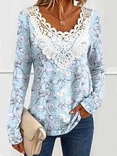 Női Blúz Tunika Csipke Összeillesztés V nyak Hosszú ujjú Grafikus Paisley Növények Kerek nyak Normál Felsők Napi Az utcán Hétvégi Csipke Patchwork Nyomtatás Fekete Tavasz Ősz Előősz #13643784