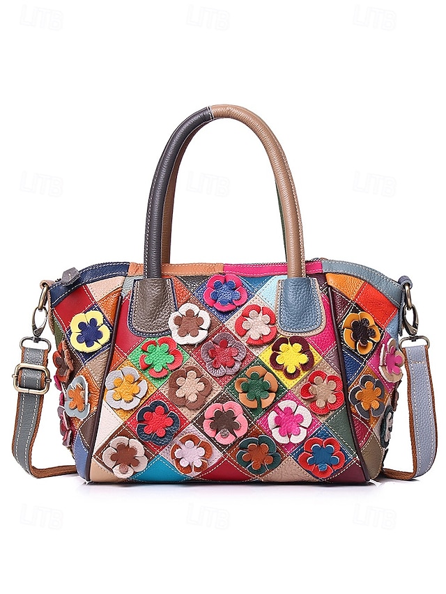 női valódi bőr kézitáska, többirányú hordozási lehetőségekkel, 3D virágdíszítéssel, stílusos és funkcionális mindennapi használatra vagy különleges alkalmakra #10428735