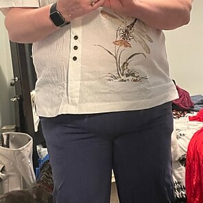 Nagyon szép, de egy kicsit nagy oldal! Általában 12-14-es US-méretet viselek felsőben – az L-es méret valószínűleg jobb lenne, de túl gyakran az L és XL méret a kisebbik oldalon.