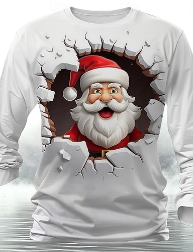 Karácsony Férfi Mikulás 3D Vicces Póló Hosszú ujj póló 3D nyomtatás Terített nyak Ing Divat Alap 3D Utca Hétköznapi Napi Fekete Rubin Piros 2 Nyár Tavasz Ruházat S M L XL XXL XXXL