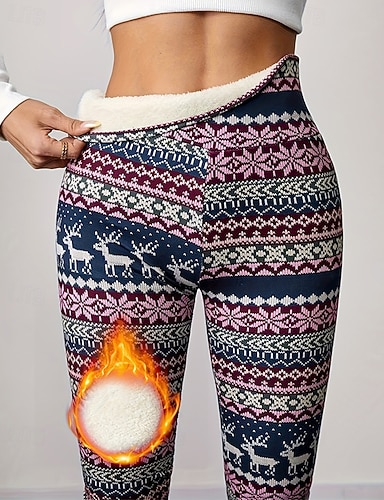 női leggings kényelmes leggings vintage divatos utcai viselet teljes hosszúságú magas derekú nadrág karácsonyi grafikus jávorszarvas hópehely minta polár thermo meleg kényelmes rugalmas utcai alkalmi hétköznapi kék