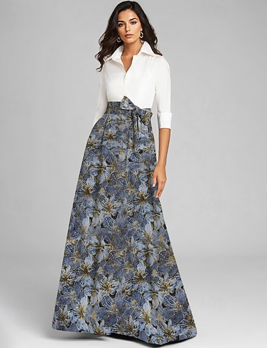 A-vonalú Földig érő Ingruha Ünnepi ruha Estélyi ruha Hosszú ujj Állógallér Elegáns Szüret Előírásos Nejlon Örömanya ruha val vel Virágos nyomat Csokor Zseb