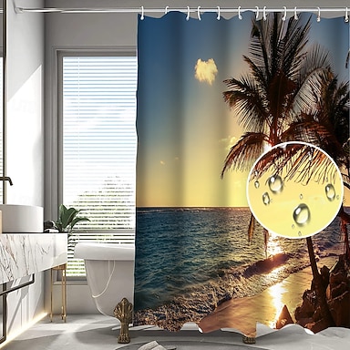 Zuhanyfüggöny kampókkal 180cm*180cm (70"*70") Poliészter Mosható Vízálló Minta Fürdőszoba Fürdőkád Dekoráció Tengerparti Tengervíz Kókuszpálma Táj