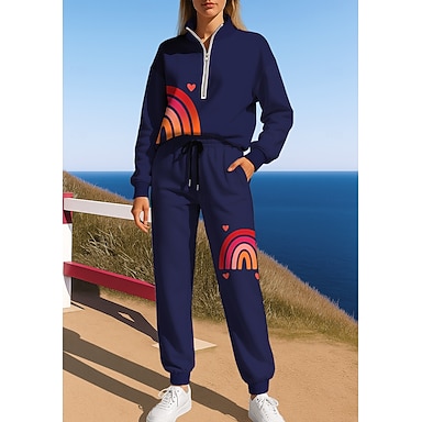 Női Melegítő melegítőben Futóruha Zsinór Cipzár Mértani Dzseki és nadrág Sportruházat készlet Tavasz Sötét tengerészkék Világos bíbor Hétköznapi Edzés Szabadtéri Mekano Buggyos Hosszú ujj Sport