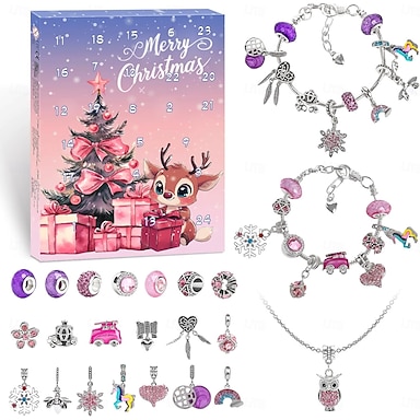 adventi naptár 24 napos karácsonyi visszaszámláló naptár 1 nyaklánccal 2 barkács karkötővel és 21 medállal fiúnak és lánynak karácsonyi ajándékötletek