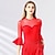 női társastánc ruha fodros egyvállas hosszú ujjú tangó keringő latin versenyfellépő ruha – piros