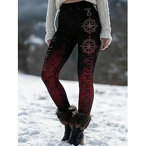 Per donna Vichingo Leggings Leggings comodi Vacanza Vintage Stile Etnico Lunghezza intera Vita Alta Grafico Stampa Confortevole Elasticizzato Casuale Quotidiano Vacanza Blu scuro Primavera Autunno