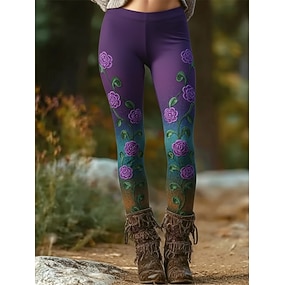 Per donna Pantaloni Eleganti Leggings Leggings comodi Vacanza Vintage Streetwear Lunghezza alla caviglia Naturale Floreale Grafico Fiore Elastico in vita Stampato Comodo All'aperto Confortevole