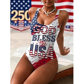 Giorno dell'Indipendenza Anniversario Americano Patriottico Costume da Bagno da Donna Intero Alto Svettamento Abbigliamento da Spiaggia Estate Grafica Bandiera Collo a U Senza Maniche Costumi da Bagno