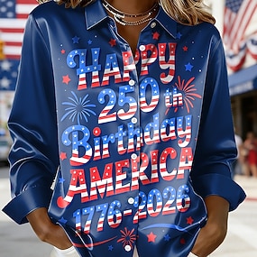 Giorno dell'Indipendenza Americana Per donna Camicia Camicia in raso Camicia button-down Camicia casual Stampato Grafico Bandiera Classico Casual Manica Lunga Colletto a Camicia Top Regolari