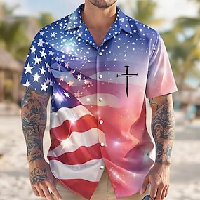Per uomo 4 luglio, 250° anniversario degli Stati Uniti Croce Bandiera degli Stati Uniti Camicia Camicia con colletto cubano Camicia con Bottoni Manica Corta Patriotico Ferie Estate Primavera Camicia