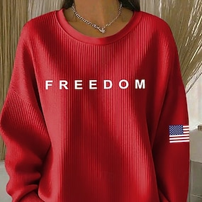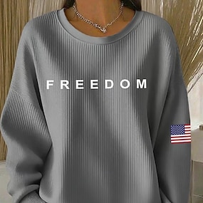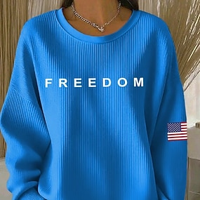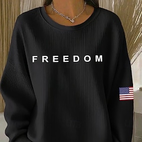 Festa dell'Indipendenza Maglietta Patriottica da Donna Stampa Grafica Bandiera Bandiera Americana Elegante Classica Casual Maniche Lunghe Collo Girotondo Tops Regolari Giornaliero Blu Nero Bianco