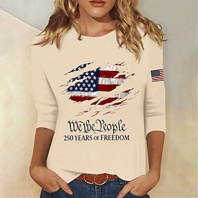 Giorno dell'Indipendenza Americana Per donna Maglietta Stampato Grafico Bandiera Elegante Classico Casual Manica Corta Girocollo Top Regolari Casuale Quotidiano Bianco Estate Primavera